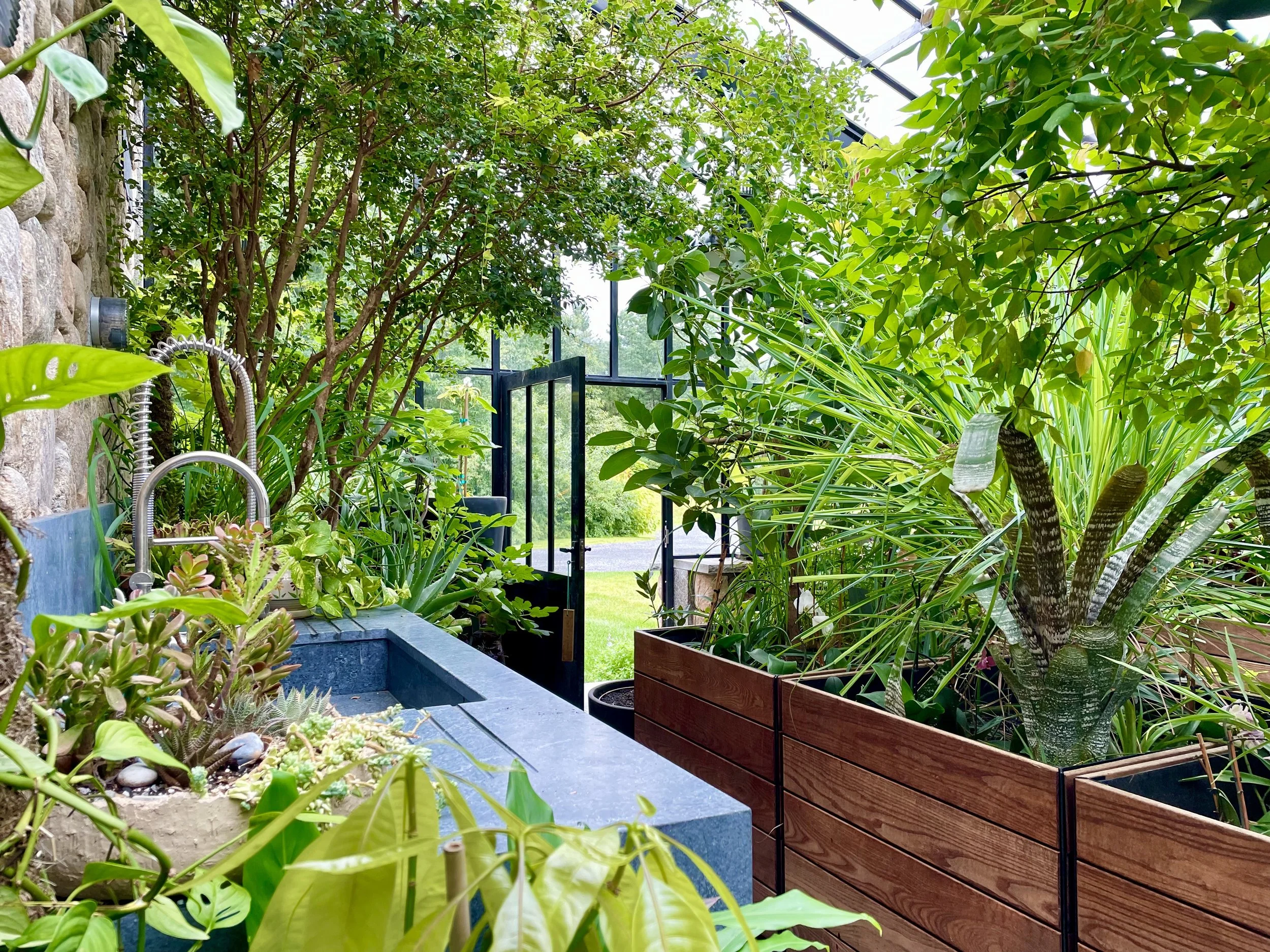 Imagine walking into your greenhouse in the middle of winter, harvesting your own fresh produce, and relaxing in a tropical social space within your greenhouse sanctuary.